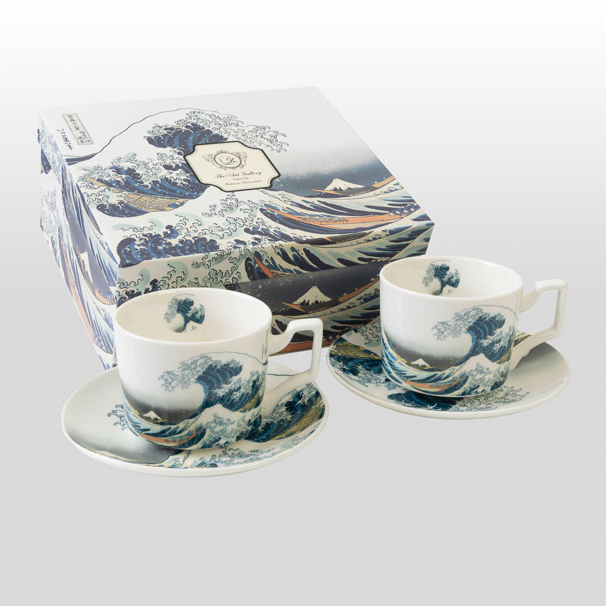 Set of two Tea cups and saucers in porcelain by Hokusai: "The Great Wave off Kanagawa"