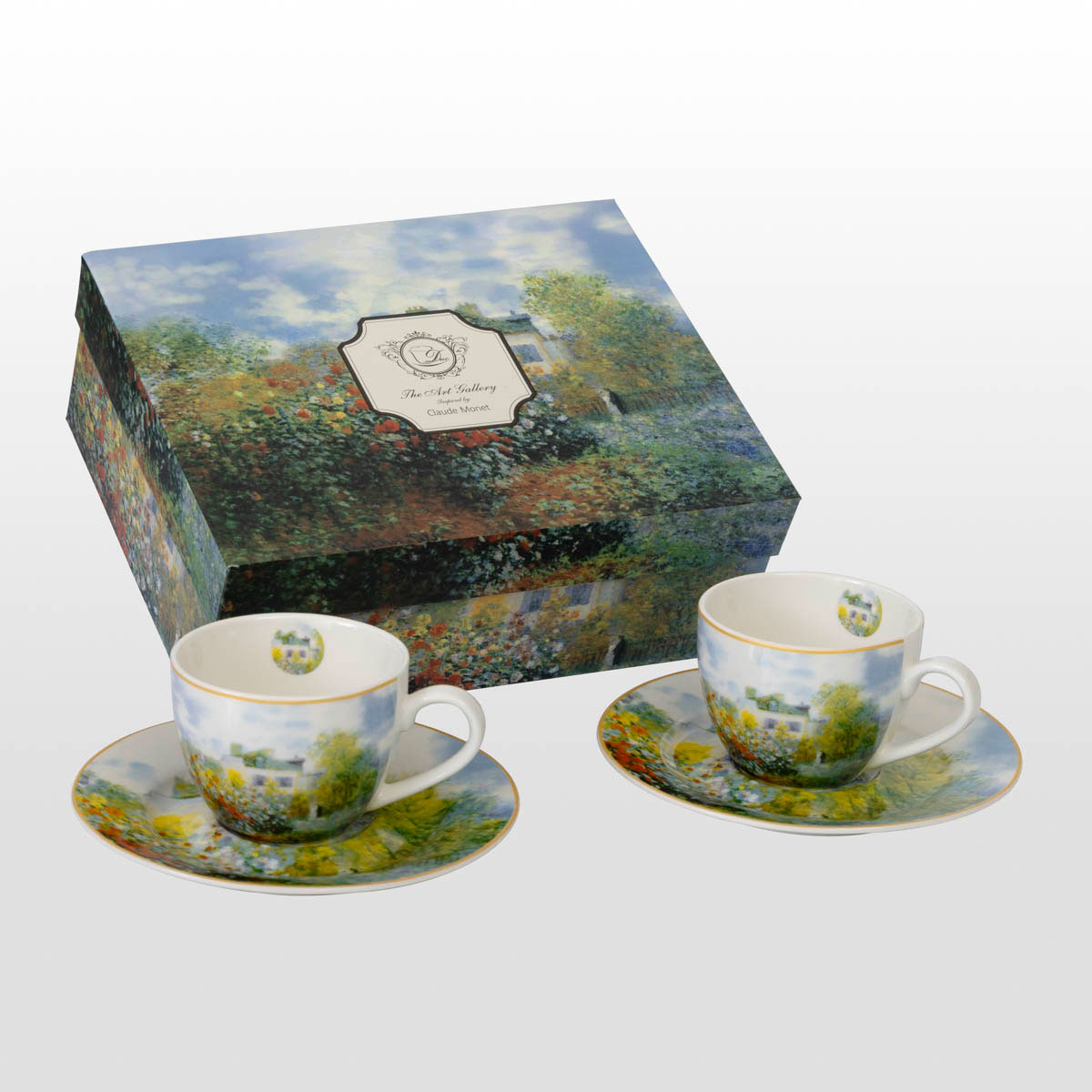 Set of 2 porcelain espresso cups and saucers by Claude Monet : "The Artist's House"