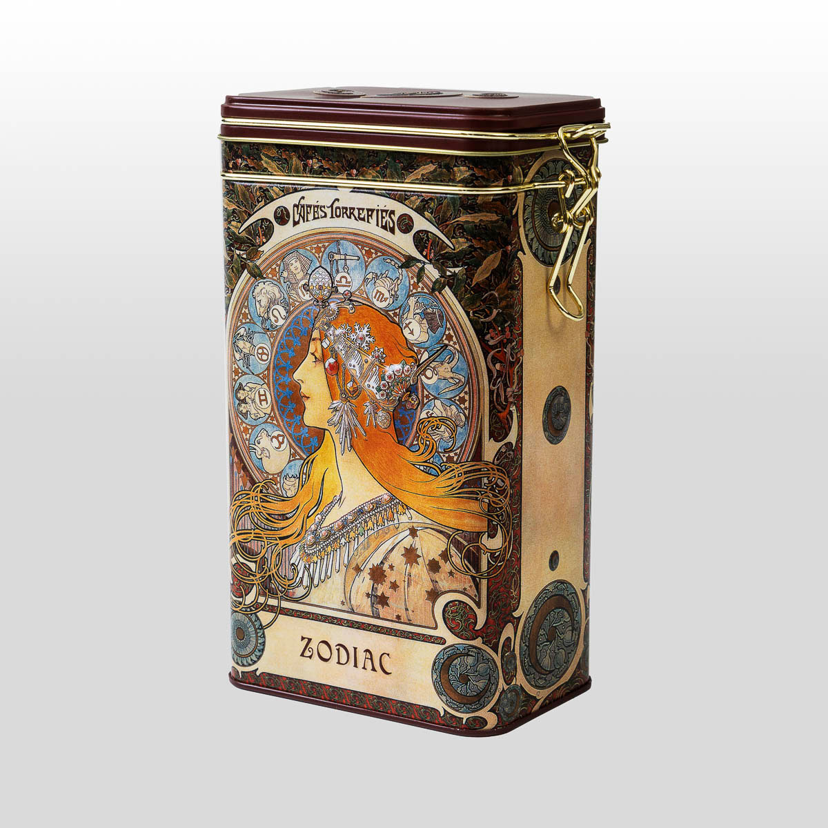 ¡Un regalo ideal que encantará a los amantes del Art Nouveau con esta elegante caja de almacenamiento hermética de metal que conservará a la perfección tanto té, café molido o en grano, arroz, pasta, sémola, azúcar, especias, vainas de vainilla y muchas otras cosas más!