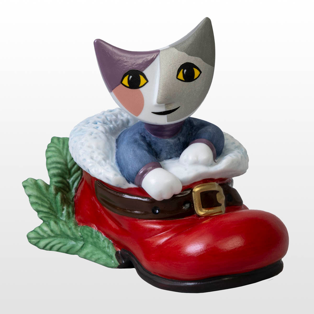 Figurilla de colección de porcelana Rosina Wachtmeister: "Paco en un zapato de Papá Noel"