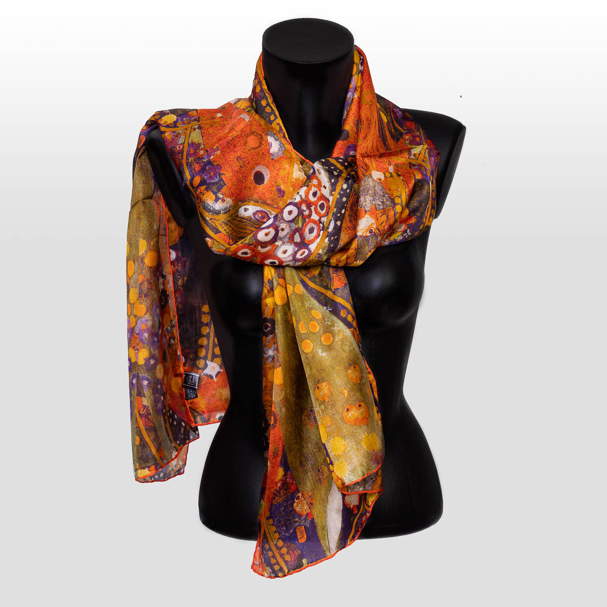 Una bufanda suave y vaporosa de Gustav Klimt "Serpientes Acuáticas" en generosas dimensiones.