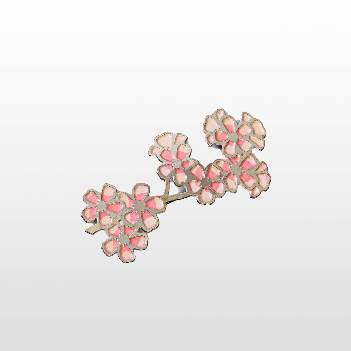 Este broche está hecho de latón macizo, chapado en plata inalterable por electrólisis y delicadamente esmaltado a mano.