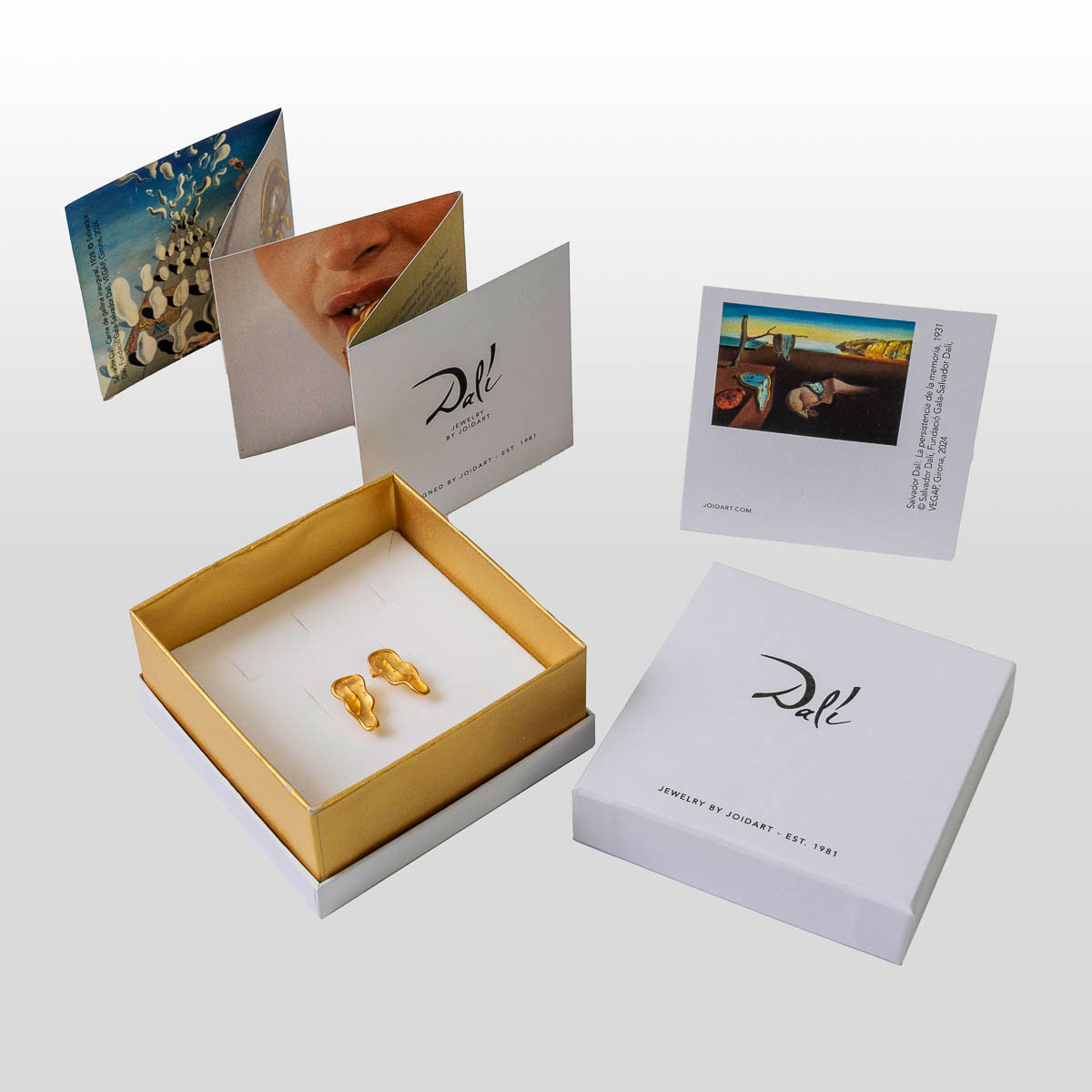 Presentados en una elegante caja con la firma de Dalí, acompañados de un folleto ilustrado que recorre el universo del artista, estos pendientes encarnan una joya ligera y claramente artística.