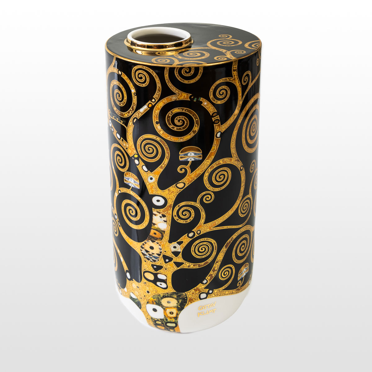 Jarrón de porcelana Gustav Klimt: "El árbol de la vida sobre fondo negro" (modelo grande)