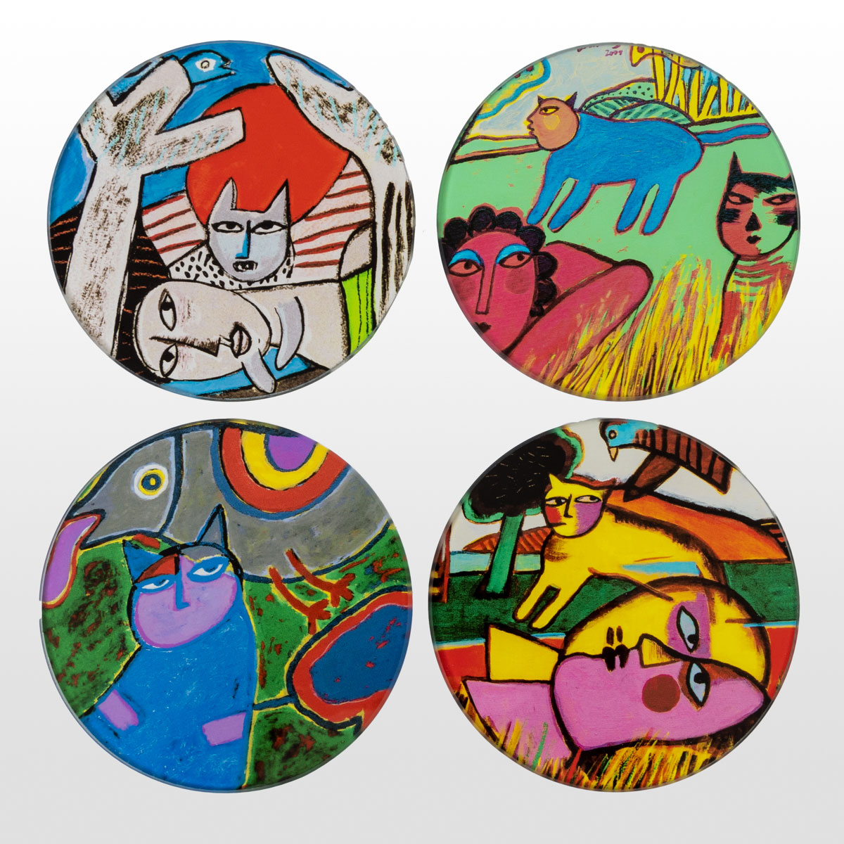Set n°2 de 4 dessous de verre Guillaume Corneille : Chats