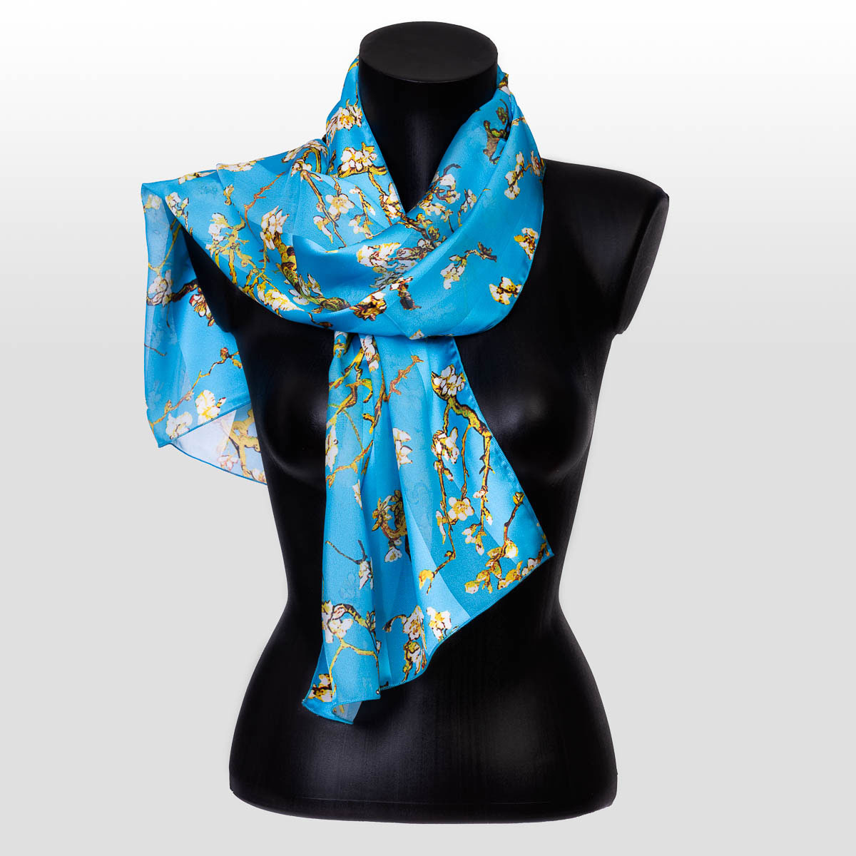 Foulard in seta dell 'artista impressionista Vincent VAN GOGH che rappresenta "Ramo di mandorlo in fiore" realizzato in 1890.
