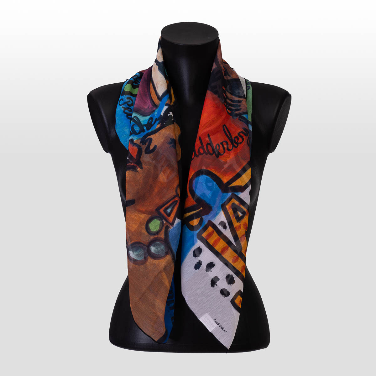 Foulard quadrato dell 'artista contemporaneo Raymond VAURS che rappresenta "Festival di Jazz".