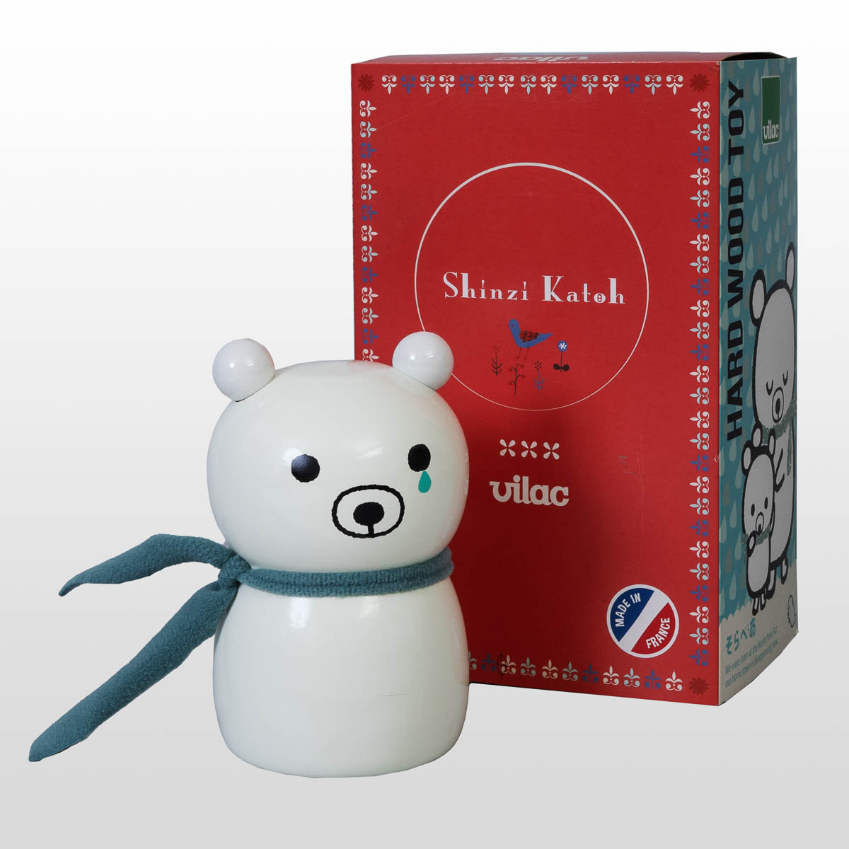 Un grazioso salvadanaio orsetto in legno proveniente dall'universo di Shinzi Katoh
