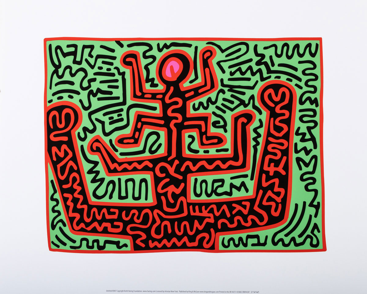 I suoi pittogrammi ripetuti a piacimento, la sua linea nera, i suoi colori allegri, lo pongono molto rapidamente sotto gli occhi dei media e del pubblico. Tra graffiti e la storia di una generazione che si sta scrivendo molto velocemente, Haring è un artista multidisciplinare eccezionale.